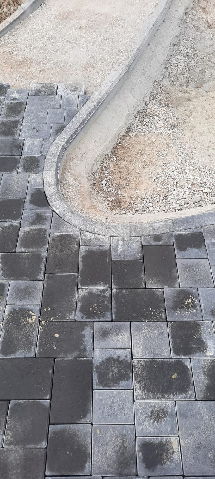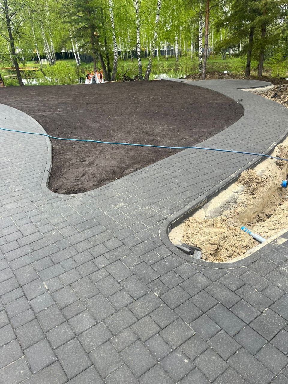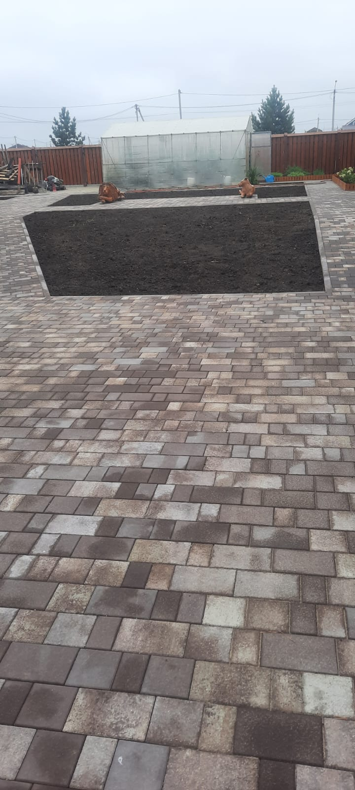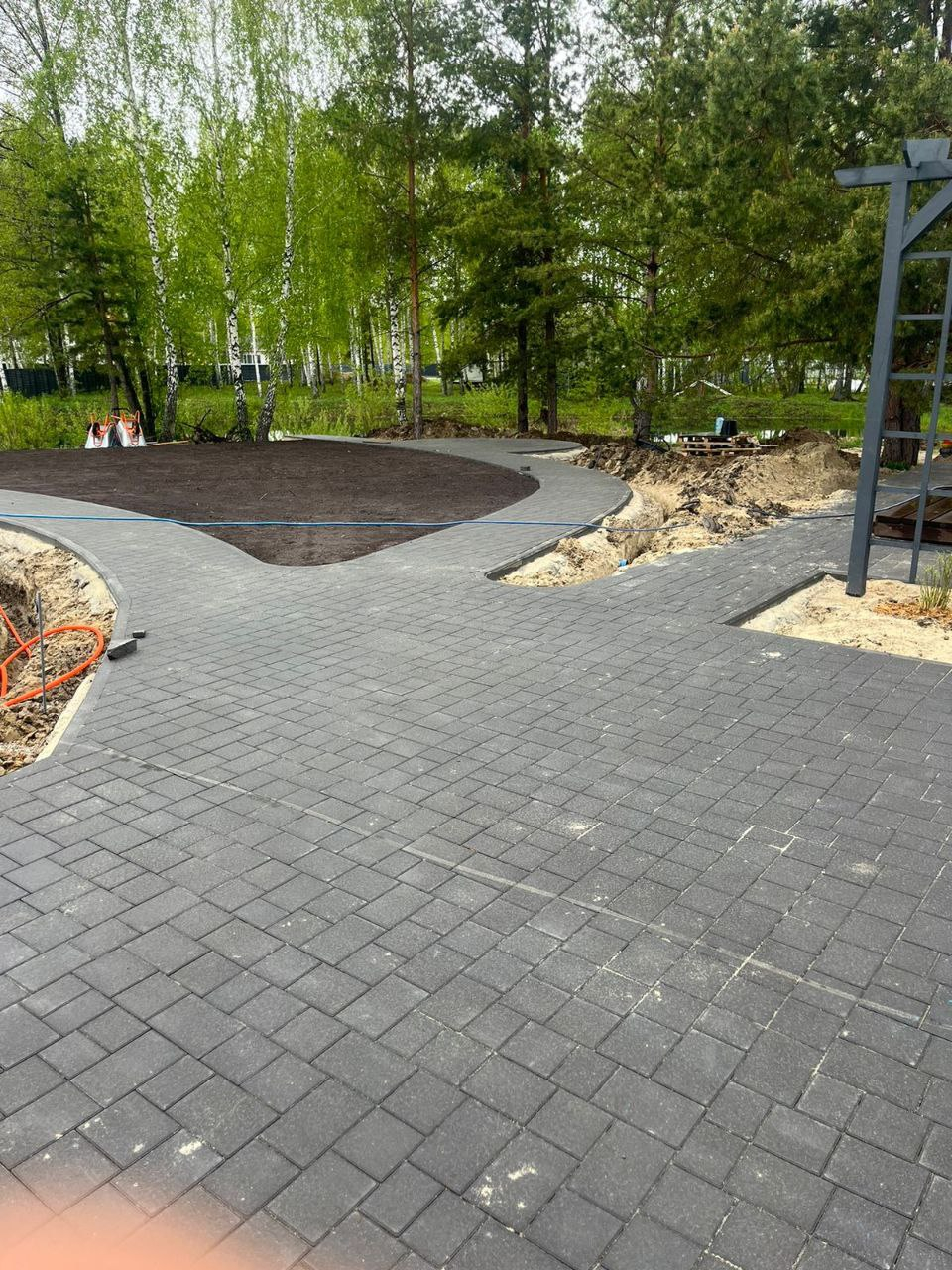 ✅ Основные этапы выполненных работ по укладке брусчатки:
