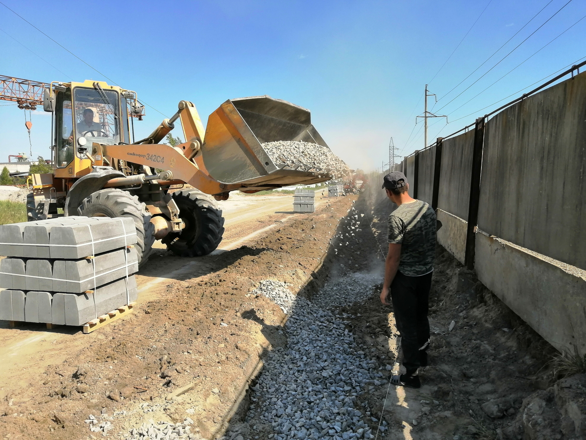 Выполнены работы по выемке грунта, засыпкой песка и щебня с уплотнением. Монтаж дорожных бордюров с заливкой бетоном. Укладка асфальтобетонной смеси.